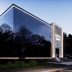 Разработано проектное предложение офиса продаж для девелоперского проекта компании "Капитал Груп". Необычная архитектура "двойного фасада" нашла свое воплощение как идея, которая позволит реконструировать существующее здание под современный офис продаж.